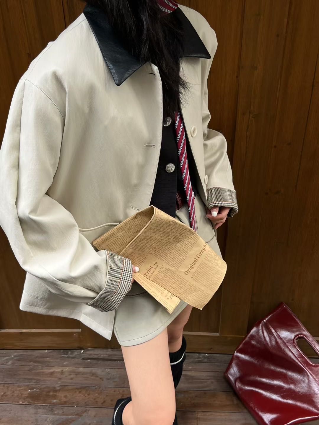 FABRIC : 비스코스섬유 69.5%, 폴리에스테르섬유 17.9%, 면 8.3%, 금속섬유 4.3%, 안감 에스테르섬유 100% |